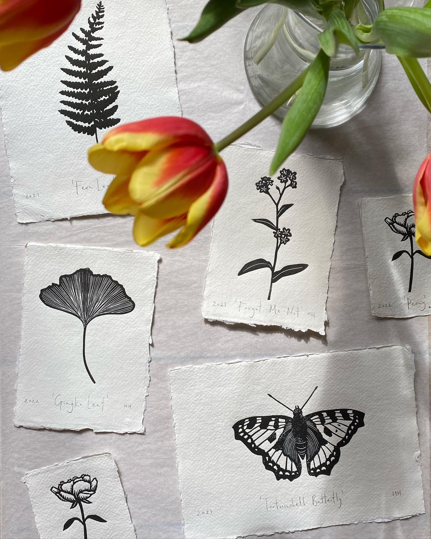 My love for printmaking began at college many years ago, but it was during lockdown in 2020 that I truly returned to the craft. Since then, I haven’t stopped carving. Every design is hand-carved and printed by me in my home studio in Nottinghamshire, where traditional processes and slow making are at the heart of my work.